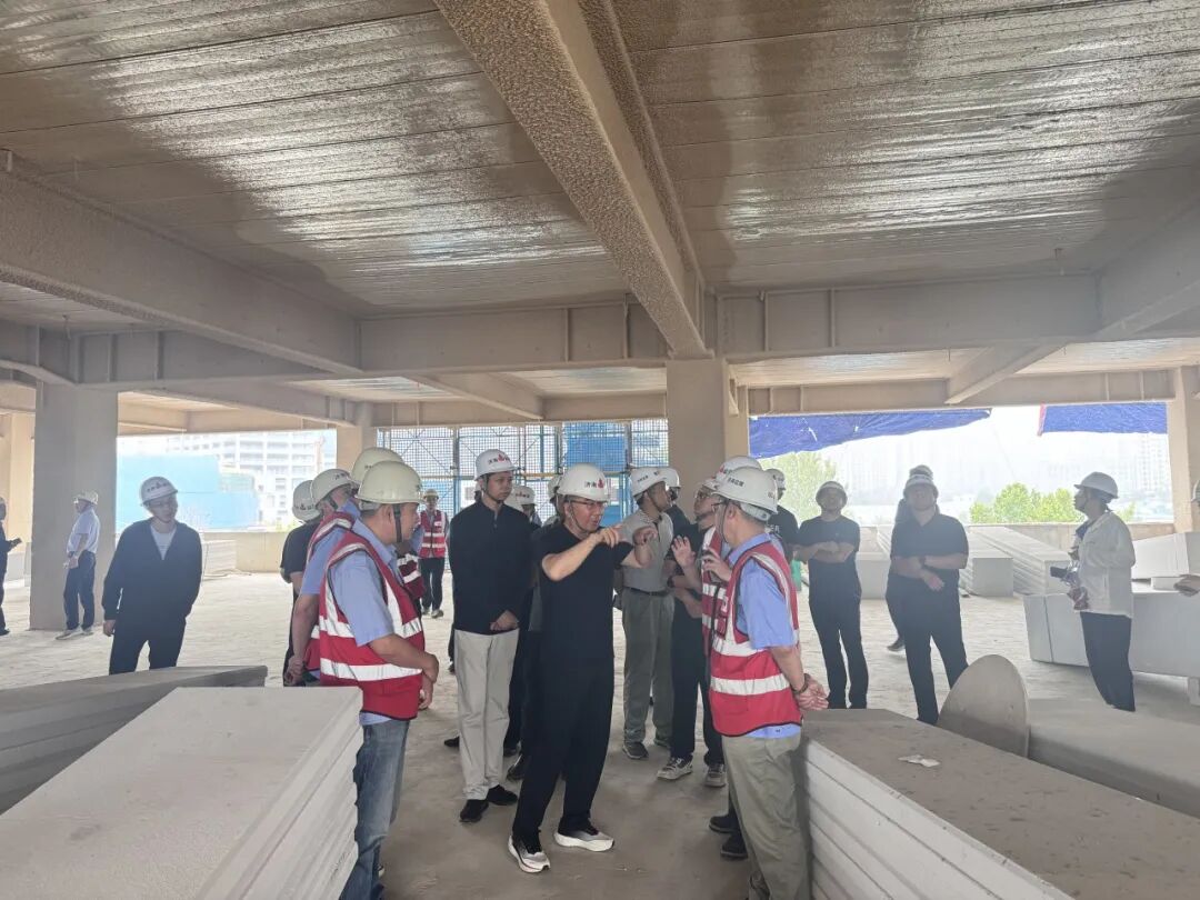 隨后,在總監(jiān)的帶領下,全體人員觀摩了項目現(xiàn)場。由總監(jiān)、各位監(jiān)理工程師向大家講解該項目鋼結構施工過程和控制要點,大家針對本項目的鋼結構柱芯混凝土頂升法澆筑施工工藝展開熱烈的討論。